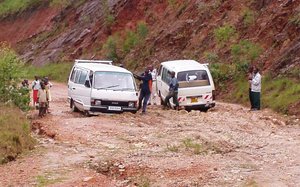 | 8.11. Die Piste wird schlechter, für 71 Km brauchen wir 3 Stunden. Von Tunduma in Richtung Mbeya wird die Straße neu gebaut, also auch hier erst mal Baupiste, danach seit Jahren nicht gewartete Teerstraße mit riesigen Löchern. Wird doch neu gebaut, warum noch reparieren? |