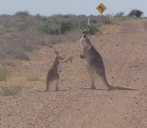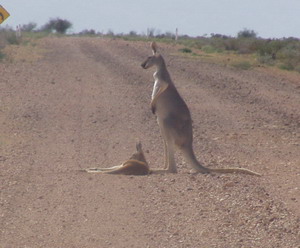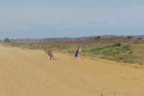 Unterwegs Kängurus und Emus.