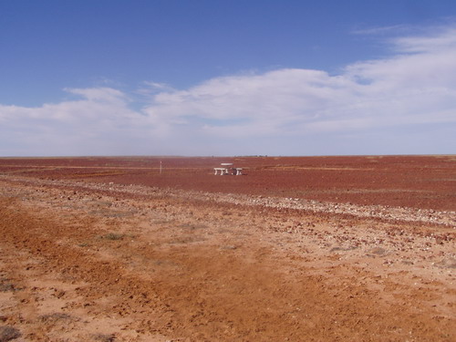 | Kurz nach Bedourie der kleine Lake Machattie, wir haben eine kleine Strecke abseits der Hauptpiste befahren. Auf diesem wenig befahrenen Stück haben wir so viele Kanguroos gesehen, wie auf keiner Strecke vorher. |