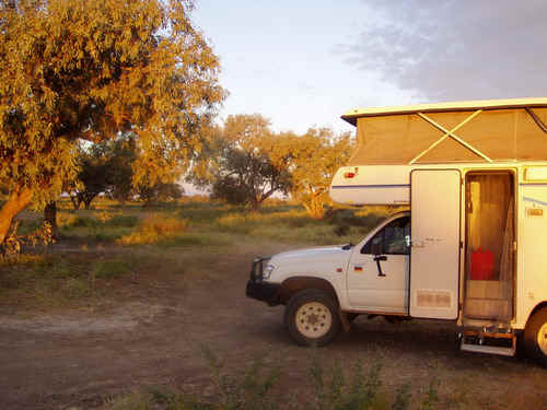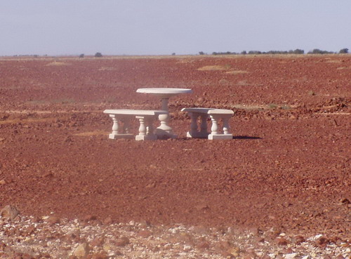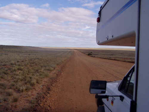 Mittagspause, mit Pfannkuchen und Annanas, 20 Ltr. getankt, Isabella will noch nach Coober Pedy, wir sind zu früh dran für unseren Heimflug und im Süden ist es zur Zeit schon recht kalt. |