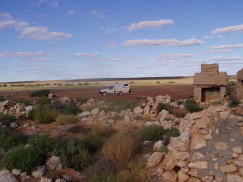 The Birdsville Track Schlangen am Weg aber wieder keine Fotos. Endlose Piste, niedere Gräser, trocken, kaum Verkehr, 5 Autos sind uns heute begegnet. Total flaches Land, Überschwemmungsgefahr, klar wo soll das Wasser hin, wenn es mal so richtig kräftig duscht. Abwechslung eine Historik Site. Bestehend aus einem alten Kamin und verfallenen Mauern eines alten Farmhauses.