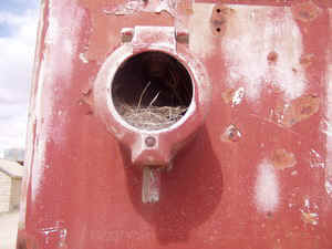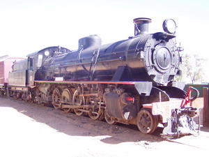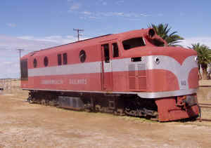 Am Abend dann freier Campingplatz, mit Toilette und wunderschönen Sonnenuntergang .27.04. Maree Ehemaliger Bahnhof des alten Ghan, zu dieser Zeit noch unter dem Namen Commonwealth Railways unterwegs. 3 alte Loks stehen noch rum, in einer hatte ein Vogel sein Nest gebaut. Er vertraut der Bahn, daß sie nicht mit den Jungen davonfährt. |