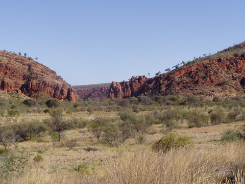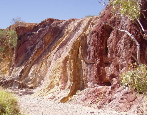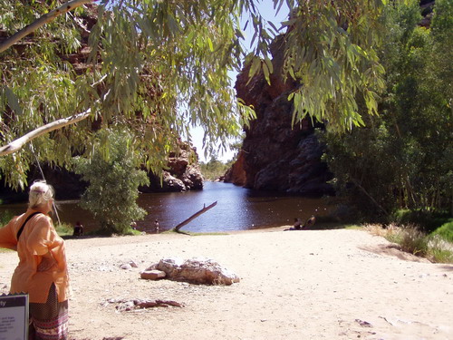 Rundtour durch die Mac Donald Range. Ein kleiner See und die Ockerwände, hier wurde früher Ocker gewonnen, auch ein heiliger Platz. Bis 5000$ Strafe wenn du hier was wegnimmst.