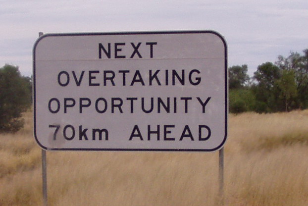 Bei diesen Staub und steinesschleudernden Trucks, gibt es nur die Flucht ins Grüne. Bisher noch keinen Steinschlag im Fenster gehabt.