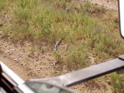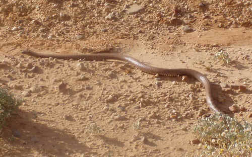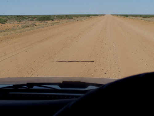 Die erste Schlange, die wir fotografieren können. Es sollten aus der Strecke zwischen Maree und Coober Pedy noch einige folgen. |