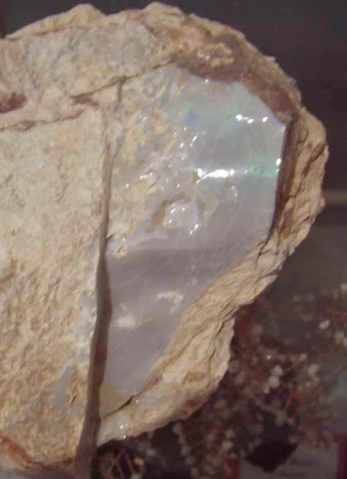 | So schöne bunte wie auf dem fotografierten Plakat, werden hier nicht gefunden, im Stein versteckt gibt es hier meist die hellen Opale. |