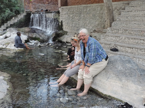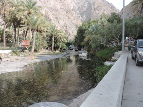 Nakhl- Wasser im Oman und warum der Schrei! Da war ein Fisch zwischen den Zehen am knabbern. Hier spielt sich alles ab, da werden Autos gewaschen, gegrillt, gekocht und im Wasser geplanscht. |