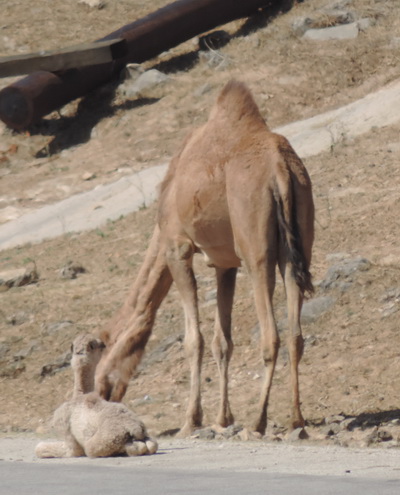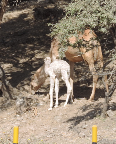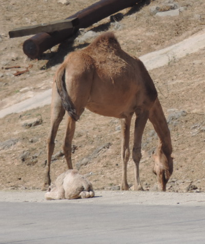 | Frisch geboren am Straßenrand. Salalah, ganz im Süden vom Oman. Der Weihrauchmarkt steht noch, aber in den 4 Wochen seit unserem letzten Besuch, steht am Uferstreifen fast kein einziges altes Haus mehr.