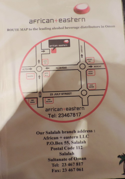 Toller Platz am Meer Nicht so leicht zu finden, der Oasis Club in Salalah. Nach den vielen einheimischen Lokalen war das wirklich eine tolle Abwechslung. Speisekarte und auf deren Umschlag gleich der Weg zum Alkoholladen beschrieben ist. ( Foto rechts) Im Oman können Ortsansässige( nicht Muslime) eine Alkohollizenz beantragen. Die Summe des Kaufs wird dann in diese eingetragen. Wir hatten in Muskat Daniel kennen gelernt, der uns zu so einem Alkoholladen mitgenommen hatte. Siehe Infoseite. Speisekarte, große Auswahl, für mich ein Bier und ein Steak, wollen Sie es Medium oder Rot? Na so was das ist mir ja auf der ganzen Reise noch nicht passiert. Es war einfach super, sehr, sehr empfehlenswert. (Zufahrt zum Hafen, an der Polizeikontrolle vorbei, ca. 200 m) unterhalb ist gleich ein Platz am Meer zum Übernachten. Unten Salalah`s neue Hauptstraße.