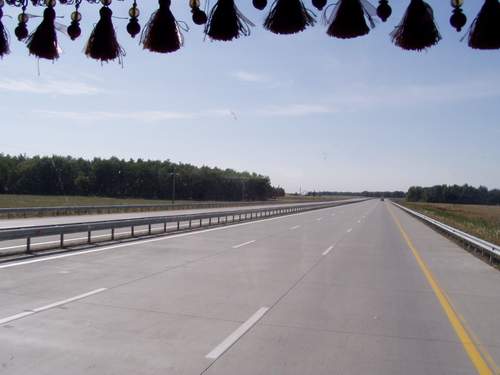 | 6 bahnige Autobahn vom Park, in dem der Präsident sein Ferienhaus hat bis zur Hauptstadt Astana. |