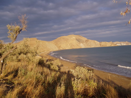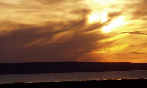 | Das haben wir gleich ausgenutzt und sind an den Rand des kleinen Aral- Sees gefahren, wir erreichen diesen bei Sonnenuntergang, der mit seiner Farbenpracht so richtig zur Stimmung passt. |
