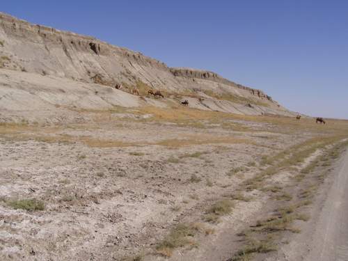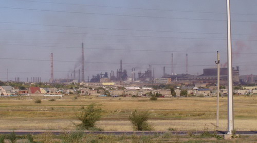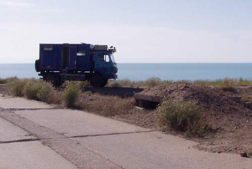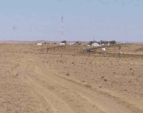 Übernachtung wieder einmal in aufgelassenem LPG Gelände. Ideal, keiner stört einem, keiner will was von uns, leider sind diese Ecken oftmals als Mülldeponie umfunktioniert. Baikonur ein paar Antennen ansonsten nichts zu sehen. Nicht wie in Cap Caneveral Schilder Visite usw. nichts dergleichen. Reiseführer spricht von monatelangen vorherigen Anmeldungen, wir haben gar nicht erst versucht. Landschaft, Gras, Gras, Gras, dafür Platz in der Pampa und kleine Wäsche, Bh, Strümpfe, Haare, beides nötig. Landschaft Brrrrrr! |