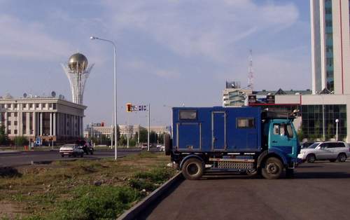 Kasachstan - Oral Dauerthema Polizei! Riesige Diskussionen bei der Einfahrt nach Oral. Stopp Straße gesperrt für 8 To, na kein Problem wir haben ja nur 7,5 T. das übliche, Minibus, Privat, nicht Comerciale usw. Danach das Schild in seinem Katalog LKW über 3,5 To. Verboten. Na das war ja was ganz was neues, Computer geholt und Bilder von der Hauptstadt Astana, wo wir mit unserer Kiste direkt am Hauplatz stehen. Wieso dürfen wir in der Hauptstadt stehen und hier nicht? Ja die Brücke sei das Problem, in der Zeit waren ca. 5-6 Kieslaster und Omnibusse vorbei gefahren. Wir mussten retour ohne zu Zahlen und auf einem anderen Weg in die Stadt, das haben wir dann nicht gemacht, weil keine Lust mehr, die Ganze Stadt war weiträumig für 3,5 to. Gesperrt. Nicht mal Brot kaufen wir konnten, geschweige denn Besichtigung. Dafür aber eine Bank, die unser restliches Geld in Russ. Rubel umtauschte. Grenze Kasachstan 20 Min. Russland. ¾ Stunde Wartezeit am Zaun und 1 ½ Stunde Abfertigung. |