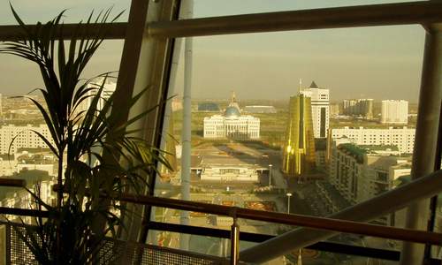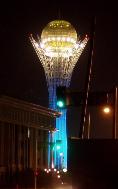 neben dem Wahrzeichen Astanas, der Goldkugel. Auf jedem Geldschein drauf.