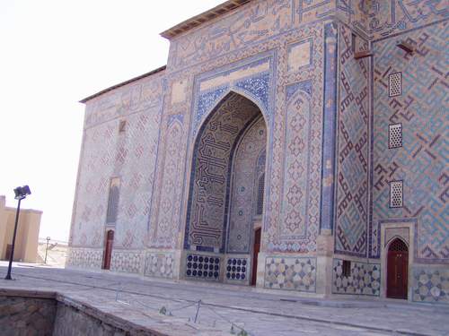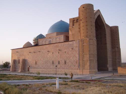 | Na ja es gibt aber Orte die einfach nicht zu übersehen sind, dazu gehört die Grabmoschee in Turkistan Bewachter P davor, wir stehen über Nacht. |