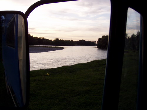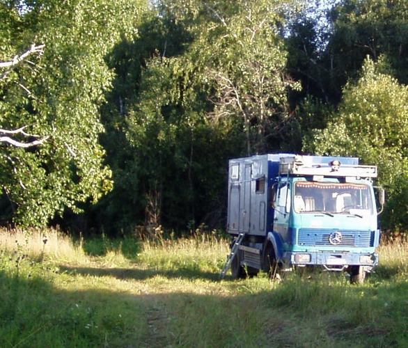 | OMSK Warten auf Visa für Kasachstan. Wir hatten etwas außerhalb von Omsk einen Platz an Omsk, bei einer Baustelle gefunden, wo wir 4 Nächte in Ruhe und vom Bauaufseher bewacht am Fluss übernachten konnten. |