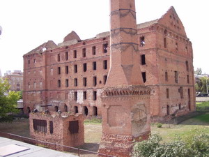 Deutsche Schicksalsstadt, hatte ja schon die Gedenkstätten beschrieben. Diesmal wollten wir noch den Keller von General Paulus besichtigen. Im Reiseführer falsch eingezeichnet, nicht links sondern rechts von der XX Straße. Gut aufgemacht, doch Beschriftung nur in russisch, von Deutschland kommt wohl keiner. Neben dem Riesenpanorama Museum, ein alten Fabrikgebäude im Zustand von 1945. | ![]() |