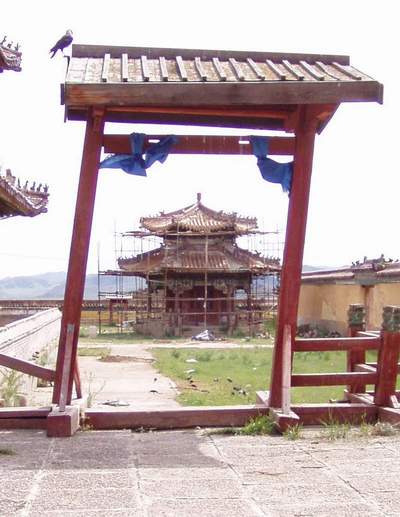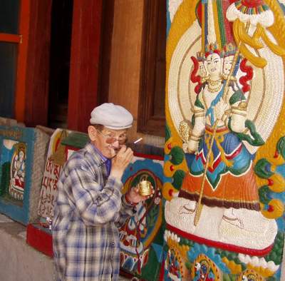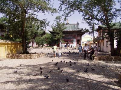 Dann zum Gandan Kloster. Um die Ecke der Maler beim Restaurieren der vielen Figuren des Tempels. Er hat hier eine Lebensaufgabe. |