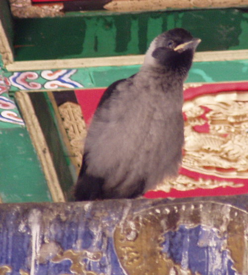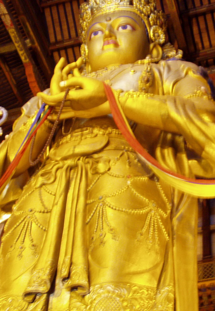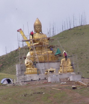 Gras auf den Dächern, halb zerfallene Gebäude, trotzdem ruhige beschaulich Besichtigung, genug Zeit auch sich auf einen Stein zu setzen und den Vögeln beim Füttern der Jungen zuzusehen. Die Anlage als solche erinnerte an China, die verbotene Stadt, Restauration in Arbeit, ist aber auch dringend notwendig. Im Hintergrund, großes Foto, entsteht eine sitzende Buddhafigur. |