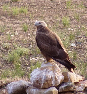 | Wir sind in der Natur, Übernachtungsplätze zu finden kein Problem. Am Morgen dann sitzt dieser Falke 30 m neben unserer Kiste auf einem kleinen Steinhaufen. Kaum sind wir unterwegs läuft ein Fuchs durchs Gelände, danach 3 Reiher ( oder sowas?) und 2 höckerige Kamele. |