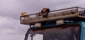 | Unterwegs hatten wir noch einen Hut gefunden, der jetzt neben unseren Maskottchen unseren Dachgepäckständer ziert. Die Figur hat jetzt auch einen Namen. Chiburaschka und stammt aus einer Russischen Fernsehserie. So erzählte es uns Ulsbold. |