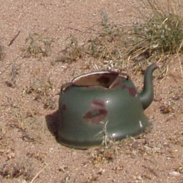 und finden Reste von Geschirr und Einrichtungsgegenständen im Sand.