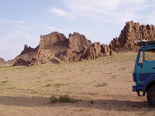 | Doch unser eigentliches Ziel ist der Nationalpark IH Gazaryn Chuluu, leicht nordöstlich von Mandalgovi ist erreicht. |