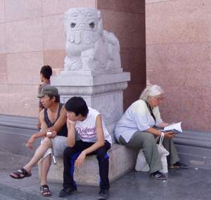 | Bei 35° Pause mit Wasserflasche oder Reiseführer. oder Leute beobachten |