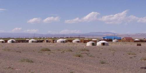 feste Gebäude aber immer wieder Jurten, einen kleinen Laden gab es,