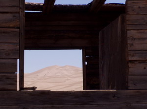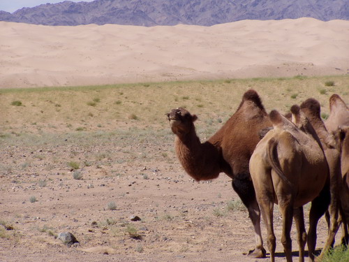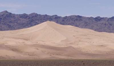 Was hat das mit der Mongolei zu tun, ganz einfach hier in den Geschäften überall zu kaufen. Nur deutsche Schrift. Rechts, Übernachtungsplatz an alter Mauer mit Sicht auf die Sanddünen. |