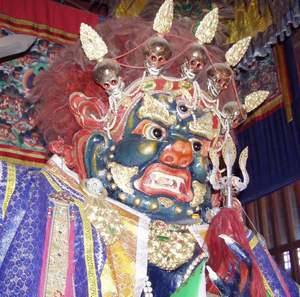 Viel besucht, vorzugsweise von jungen Paaren mit Kleinkindern, so unser Eindruck. Wir wissen wirklich nicht wer oder was da verehrt wird. Eine riesige Anlage mit Götterfiguren und viele Pferdekopfknochen. |