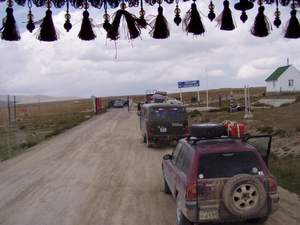 Fahrzeuge passieren den ersten Grenzzaun. Nach 15 Minuten und 19 km