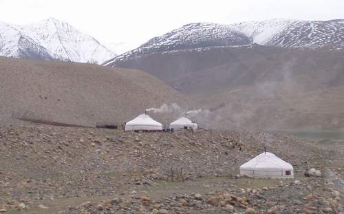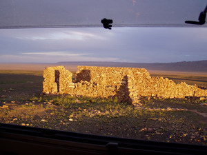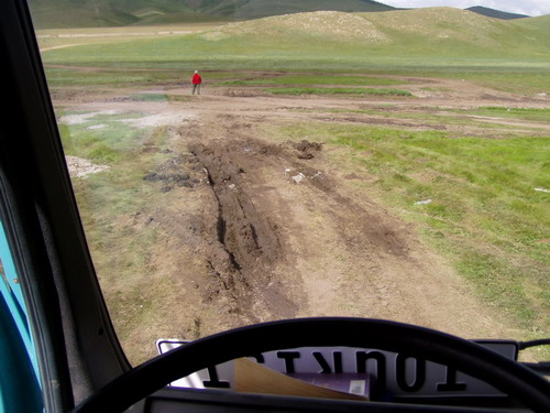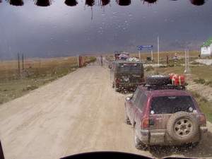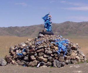 Immer wieder Steinhaufen(Owoos) mit Fahnen geschmückt, oft aber auch mit leeren Wodkaflaschen dekoriert. Freundliche Kinder und einsame Gegend. |