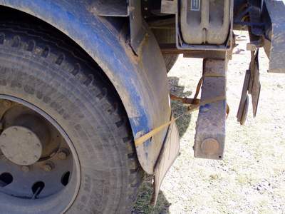 Opfer. Schutzblechhalterung gerissen, hier mit Spanngurt befestigt.
