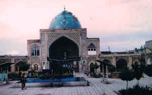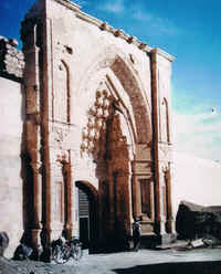 In Zangan versuche ich die erste Mosche zu fotografieren. Meine Frage wird mit ja beantwortet und ich werde gleich eingeladen die inneren Räume zu besichtigen. Auf den Teppich soll ich Platz nehmen, kaum getan gesellen sich noch einige jungen Leute dazu Mir werden Brot, Schafskäse, Marmelade und Tee gereicht. Jede Menge Fragen aber auch von Ihnen erfahre ich einiges. So bleibe ich fast zwei Stunden. Natürlich noch ein Foto zur Erinnerung. | ![]() |