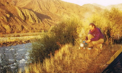 Auf der allabendlichen Suche nach einem versteckten Übernachtungsplatz, könnte da drüben eine schöne ruhige Ecke sein. Das zweite Bild zeigt mich beim morgendlichen Cafekochen am Kelkit Fluss zwischen Resadiye und Susehri bei + 5.0 Grad. | ![]() |