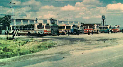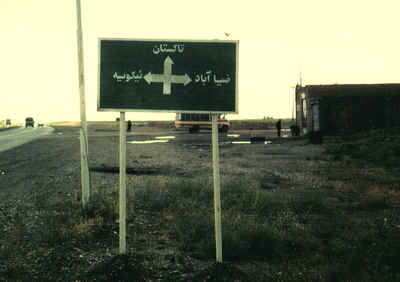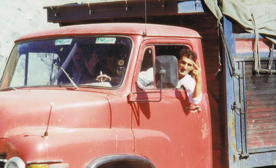 So sitze ich mit Ihm am nächsten Tag im Bus, hundert Kilometer Strecke für 0.50 DM, doch wir erreichen nichts. Reza der Fahrradmensch versucht nochmals das Rad wieder zum Laufen zu bringen, ohne Gepäck können einige Runden im Hof gedreht werden, doch nach 10 Km Fahrt mit dem ganzen Gepäck, gebe ich auf und halte einen kleinen Lieferwagen an, der mich bis Teheran mitnimmt |