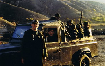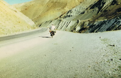 Service inbegriffen, die Sache mit Ali. Ende der ebene Straße, es geht langsam wieder ins Gebirge. An jeder Straßengabelung Militär. Langsam wird es Zeit mir einen Platz zu suchen, bei dem vielen Militär am besten gleich in deren Nähe. 1. Hinter der Eisenbahn große Wiese und ein eingezäuntes Gelände. Hin und fragen. Er kann nicht entscheiden, Mann oben mit Klappen auf den Schultern, 2 km weiter. 2. Nach 2 Kilometer ( 3,5 gefahren ) alter Bahnhof, große Wiese mit Bäumen, schöner Platz. Ich frage, keine Entscheidung, Mann mit Schulterklappen 2 km weiter. 3. Hier waren mehrer Möglichkeiten, aber die Sache hatte ich nun mal angekarrt. Aus den 2 km wurden allerdings 4,5 , die Sonne war am Untergehen und es wurde kalt. 4. Riesiges geschottertes Gelände mit Unterkünften, Mannschaftwagen, gepanzerte Fahrzeuge, MG Stellung. Frage, Posten, Mann oben mit Schulterklappen muss entscheiden. 10 Minuten vergehen, zwischenzeitlich wurde ich von der ganzen Besatzung begutachtet. Da kommt einer mit Sprechfunk, Verständigung schlecht, so darf ich eine Stunde warten. Sweat Shirt an, Pullover drüber und noch die Jacke, Temperatur bei 0. Endlich, ich darf mein Zelt aufschlagen, dort auf dem freien Platz direkt unter der hell strahlenden Lampe Das gesamte umliegende Gelände incl. der Berghänge war mit hellen Lampen bestückt. Ich war gerade fertig mit Aufbau, kommt Ali, der Mann mit den Schulterklappen, mit der Frage: "do you like something to eat ".Meinen Einwand ich hätte alles dabei blieb unbeachtet. Drei Mann hoch, kamen Sie, einer mit einer großen Platte, Bohnen, Fleisch, Kartoffeln, Brot, und 3 süßen in Honig und Öl getränkten Kuchen. Der Zweite mit einem Glas und Wasser und der Dritte mit einer riesigen Taschenlampe um das Ganze zu beleuchten. Ali der Mann mit den Schulterklappen , konnte recht gut englisch, so dass sich ein recht lustiges Gespräch entwickelte. In der Nacht radadadad ballerte ein Maschinengewehr los, dann wieder Ruhe. Die Nächste Nacht verbrachte ich wieder weit weg von Straße und Militär im Gebüsch |