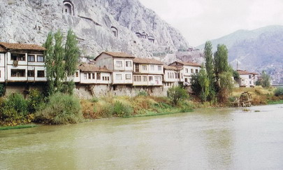 Weiter bis zur Straße. Vor Akyazi musste ich noch 1 1/2 Stunden schieben, sodass ich Corum heute nicht mehr erreichen würde. So baute ich im nahen Wald mein Zelt auf , es regnete mal wieder. Finstere Nacht, ich saß beim Abendessen, als zwei dunkle Gestallten den kleinen Weg an meinem Zelt vorbeimarschierten. Einer von Ihnen wollte das wohl genauer untersuchen. Er machte aber einen gewaltigen Satz zu Seite, als ich Ihn mit Hallo, aus meiner Höhle anrief. Sie verschwanden ohne ein weiteres Wort. um 20.00 Uhr kam dann eine ganze Kompanie Soldaten, mit Jeep und Scheinwerfer, ich solle mitkommen, kein Campingplatz. Wie die sich das wohl vorstellen, Zelt stehen lassen im Regen. Ich nix verstehen und blieb einfach im Zelt. Mit allem guten Zureden war mir nicht zu helfen, so gaben sie es nach einer halben Stunde auf. Morgens weiter über Corum nach Amaysia, der Stadt mit den tollen Felsengräbern. Von da aus weiter nach Turhal und Tokat, wo ich kurz hinter der Stadt einen Übernachtungsplatz am Waldrand fand. In der Ferne Blitze und Donner. |
