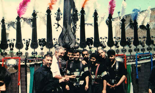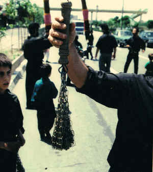 Ich kam gerade rechtzeitig zum Ashura-Fest. So sehe ich überall Gruppen die sich mit Ketten geißeln. Gar zu gerne würde ich ein Foto machen. Frage ob ich darf ? Schon stehe ich mitten in der Gruppe. Doch damit nicht genug, werde ich gleich eingeladen an der weiteren Feier, die in einem großen Wohnzimmer stattfand, teilzunehmen. | ![]() |