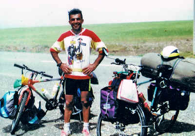 Peiman aus Tabris auf dem Weg nach Hamburg, in Radfahrerdress und wir in langen Hosen Auch die Australier waren Ihm begegnet und sprachen davon, als ich Sie das nächste Mal traf In Qare - Ziya gab`s Zoff, drei bewaffnete Zivilisten wollten mich nicht in den Ort lassen. Nach Teheran geradeaus, ich musste aber einkaufen und werde energisch. Dies ruft jetzt die Polizei auf den Plan und nach endlosen Diskussionen kann ich in den Ort. Brot? ein Junge führt mich zu einem Gasthaus. Ich tausche Zigaretten gegen Brot, da ich im Restaurant nicht essen wollte. 2 km weiter erwischt mich ein Platzregen, nass bis auf die Unterhose suche ich nach einem Übernachtungsplatz. Drei Häuser, mein Wunsch wird abgelehnt, auch machen 3 große Hunde unerbittlich auf ihr Hausrecht aufmerksam. Der nächste Regenguss. Auch egal, langsam wurde es dunkel. Caybude am Wegesrand, ich darf bleiben, mit Möglichkeit zum Essen. Evogli, am nächsten Tag, ich biege kaum von der Straße ab, werde ich von einem Motorradfahrer gestoppt. Was ich will ? Brot und Cola. Er begleitet mich zu einem Laden, wo mir Cola abgefüllt wird. Brot- ich muss zu einer Bäckerei, der Bäcker wird aufgefordert jetzt für mich Brot zu backen. Der Laden ist vor Neugierigen proppevoll. Eine Möglichkeit meinem Bewacher zu entwischen, ergibt sich bei einem offenen Fahrradladen, in den ich kurzerhand hineinfahre. |