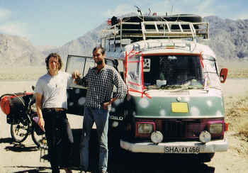 Wenige Kilometer weiter überholen mich Manfred Walz und Micheal Sommer in Ihrem uralt Mercedes, mit zerbrochener Scheibe. Sie wären auf dem Weg nach Indien, aber zur Love Parad wollen sie wieder zu Hause sein. Bei meiner zweiten Indientour mit Frau und Truckmobil, 1999/2000 traf ich Michael, diesmal mit Freundin, wiederum in Indien. Homepage in Arbeit ( mit dem Truckmobil nach Indien ) In dieser Homepage mehr Infos für Selbstfahrer, nicht so ein langer Reisebericht wie dieser. |