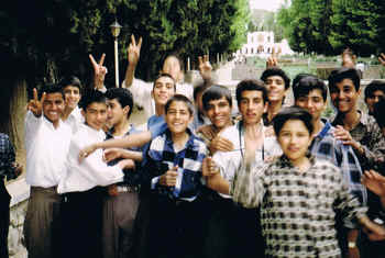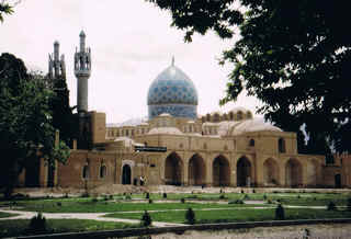 | Mahan mit seiner schönen Mosche und der für Iran tollen Parkanlage. Dort hatte mich ein Schüler angesprochen, mit den üblichen Fragen, danach der Wunsch für ein Foto. Jetzt weiß ich was so manche Schauspieler und Politgrößen auszuhalten haben. Eine halbe Stunde war ich Fotomotiv für die ganze Klasse und etliche Parkbesucher, dann habe ich mich verdrückt. |