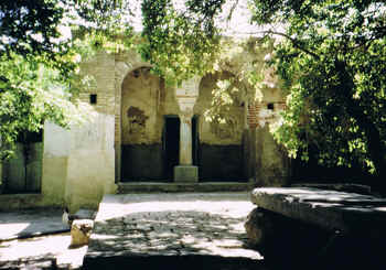 Ali Abad, der kleine Ort mit Gaststätte, besser gesagt, es war eine ehemalige Karawanserei, hatte es mir angetan. Unter Bäumen, mit Getränken versorgt, kleiner Bach, der unter der Mosche hindurch floss und ein kleines Wasserbecken speiste, richtig zum Ausruhen in der Mittagszeit. Hier gab es was zu sehen, da wurden die Hühner gewaschen, lebend, an den Flügeln gepackt und ab ins Wasser, eine Zigeunerfamilie machte Rast, mit Kochen in riesigen Töpfen, die Reste ab in das Wasserbecken. Ich hätte gerne ein Foto von dem Zigeunermädchen gemacht, selbst meine Fotos betrachten , aber von sich? Nein. Schade denn Sie hatte ein wunderschönes Brokatkleid an und mehr zur Dekoration einen durchsichtigen schwarzen Tschador darüber. |