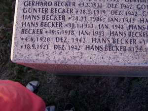| Natürlich führt unser Weg zum 30 km weiter liegenden deutscher Soldatenfriedhof, 40 000 sind bisher hierher umgebettet worden, weitere 10 000 von denen man die Grabstätten weiß sollen noch folgen. Die verlorenen Steine sind es die uns bewegen, sind sie doch die Aufzeichnung der vermissten Soldaten .115 000 unter anderem von Hans Becker, dem Bruder von Isabellas Vater. Bemerkenswert, die Aufstellung dieser Würfel in mitten vom ehemaligem Kampfgebiet, rings rum sind Granateinschläge und alte Stellungen zu erahnen. |