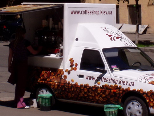 | Das hatte Isabella am besten gefallen. Das mache ich auch! Fahrbarer Coffeeshop. Schöne Kirchen und jede Menge Denkmähler, zur Freude der Kinder und beliebtes Fotomotiv. In der Stadt U – Bahn, mit der längsten Rolltreppe, die ich in meinem bisherigen Leben gefahren bin. |