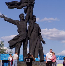 | LKW dürfen bis 8 To fahren, na bitte, das war doch mal eine gute Info. Wir kurven im Stau bergauf, bis zur Riesenstatue, mit P, ich musste nicht mal den Berg erklimmen. P für 100 Rubel = 3 € bewacht, davor auch ohne, aber besser so und sorgenfrei durchs Gelände. |