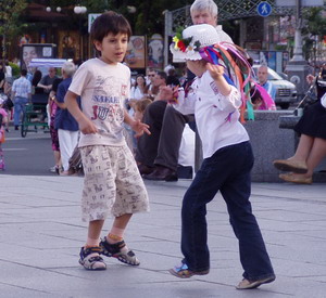 | An diesem Tag war die Prachtmeile für den Verkehr gesperrt, wir wissen nicht ob das Samstags immer so ist. Da tanzten sogar die Kinder auf der Straße. |